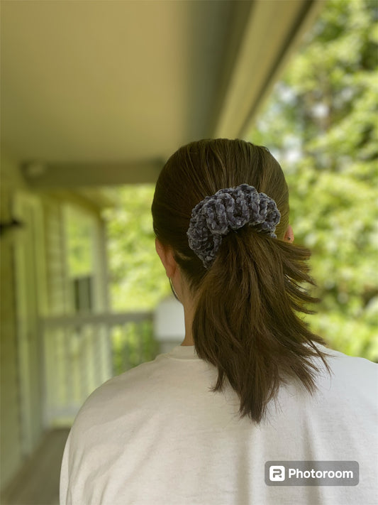 Crochet Velvet Scrunchie | Misty Gray | 2 pack